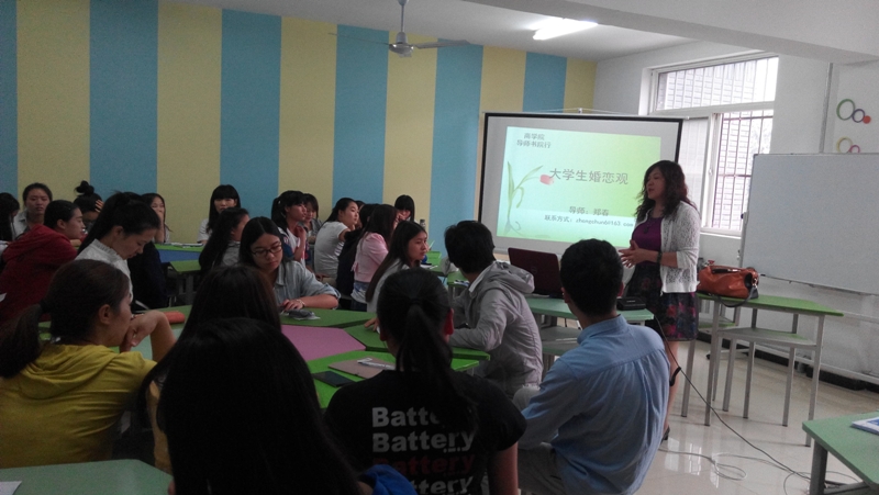 5月21日下午,太阳成集团tyc4633人力资源管理系主任、副教授郑春老师走进鱼化龙书院与同学们一同探讨关于“老员工婚恋观”的主题活动。