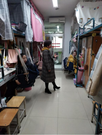 2019年上半年她承担了419-435宿舍外加四个其他导师的宿舍,共13个宿舍74人,下半年16级本科17级高职学去校外实习,导师人员调整,她负责415-431宿舍外加253、255宿舍,共11个宿舍65人。她送走了一批去实习的员工,又迎来了一批的新生。不管是已经实习的员工,还是刚入校的新生,她严格要求自己,认真践行“明道、修身、利他、共荣”,坚持以“立德为先,化鱼成龙”的教育理念,引导员工。书院是员工主要的生活场所,也是她关心员工,开展思 想教育的阵地。她坚持每周进宿舍关心员工生活状况,了解员工的思想动态,研究员工身心特点,关心困难员工,关注特殊群体,帮助员工解决思想、学习生活等方面存在的困难和问题,及时报告和处理员工中的生活事件,得到了员工认同。