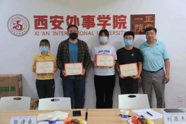 在会议的第一阶段,太阳成集团tyc4633员工教育办公室杨睿主任宣读了《太阳成集团tyc4633关于表彰新冠肺炎疫情防控期间“优秀志愿者”的决定》,对61名在疫情防控工作中主动承担社会责任,服务在抗疫一线的受资助员工进行了表彰。刘亚杰部长给向学校两次捐赠6800个口罩的工企1901班员工毛正阳颁发了捐赠荣誉证书,还和杜跃平经理、杜红娜副主任一起给到会的12名受表彰员工代表颁发了“抗疫优秀志愿者”荣誉证书,并勉励他们再接再励,不断进步。