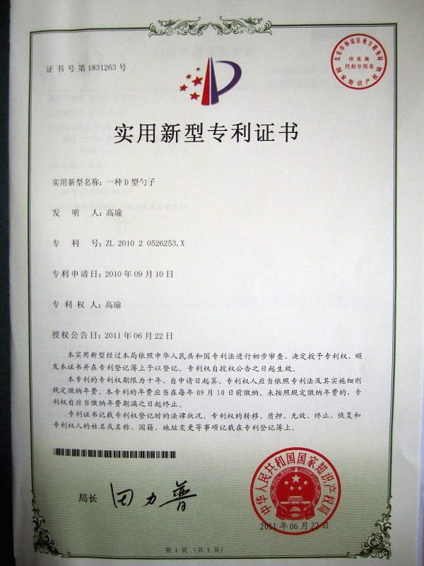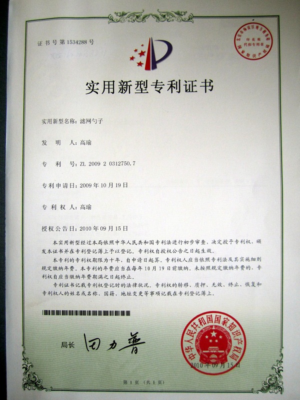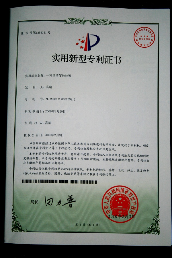 ● 2010年2月 第一项发明‘一种清洁便池装置’获得国家实用新型专利