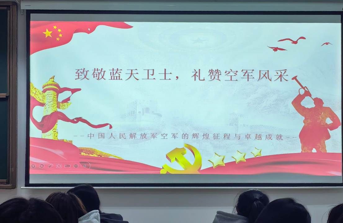 鹰击长空,鱼翔浅底。活动伊始,卫瑞妮同志详细介绍了空军的成立背景。1949年11月11日,人民解放军空军正式成立,标志着我国空中力量的崛起。从最初的艰难起步,到如今成为世界一流的空中力量,我国空军的发展历程充满了艰辛与辉煌。同学们们纷纷表示,空军的发展壮大是国家强盛的重要标志。在讲解空军的英雄事迹环节,同学们聆听了一代代空军英雄的感人故事。从抗美援朝时期的空战英雄,到新时代的航天员,空军英雄们用鲜血和生命捍卫着祖国的蓝天。这些英雄事迹激励着在场的每一位同学,要将英勇顽强的精神发扬到工作生活中。