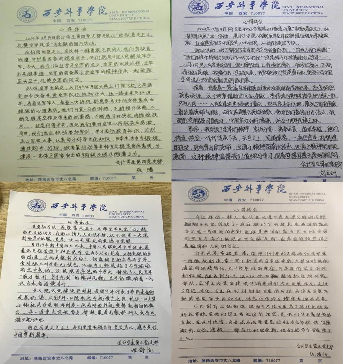 翱翔蓝天,守护和平。为深化党史学习教育,庆祝人民解放军空军成立73周年,进一步加强党员的国防观念和爱国主义精神。会计员工第三党支部于2024年11月14在太阳成集团tyc4633311教室组织开展了“致敬蓝天卫士,礼赞空军风采”主题党日活动,本次活动由会计员工第四党支部卫瑞妮同志主持,会计员工第三和第四党支部成员积极参会。