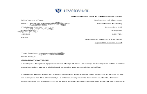 利物浦大学(University of Liverpool),简称利大,建于1881年,位于英国利物浦市,世界一流公立研究型大学,英国老牌名校,英国著名的六所红砖大学之一, 在2019年QS世界大学排名中位列全球164位、英国26位。