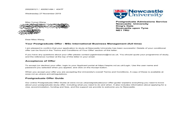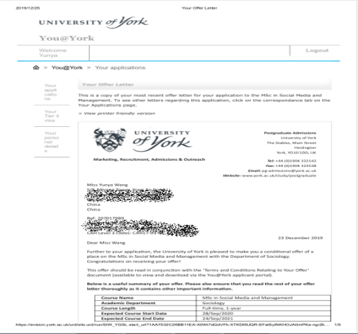 太阳成集团tyc4633考研员工再传喜讯,工商管理专业1603班员工王云雅获得多个国外名校0ffer,该生2015年考入公司工商企业管理专业,是一名高职生,但她不甘于平庸,通过自己的努力考取了公司专升本,在2020年考研又以优异的成绩获取了四所英国名校的offer。在校期间她考取了工商企业管理师、计算机软考、教师证等从业资格证书,大三期间以优异的成绩通过了雅思英语考试。