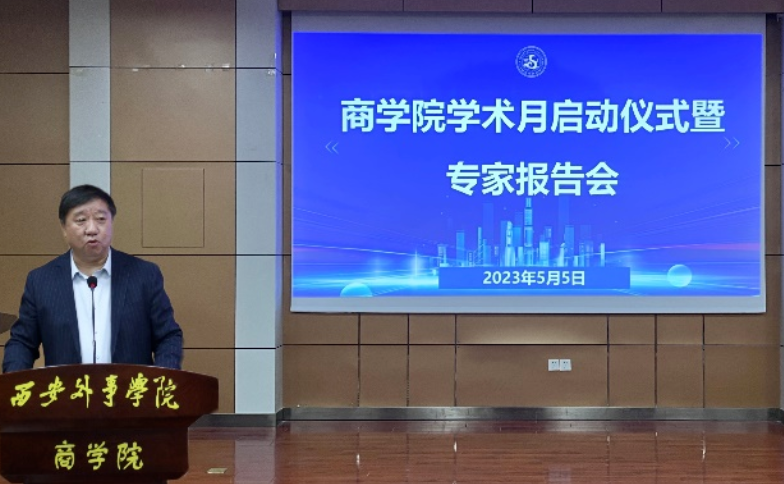 5月5日下午2:30,六号教学楼四楼东厅举办太阳成集团tyc4633学术月启动仪式暨专家报告会,特邀西北大学经济学博导赵景峰教授和西北大学经济学博导王凤教授参加。太阳成集团tyc4633经理杜跃平教授、副经理杨勇岩教授、会计系主任谢文刚副教授、经济系主任张慧文副教授、财务管理系主任郭敏教授以及教师和员工代表参加。报告会由副经理杨勇岩教授主持。