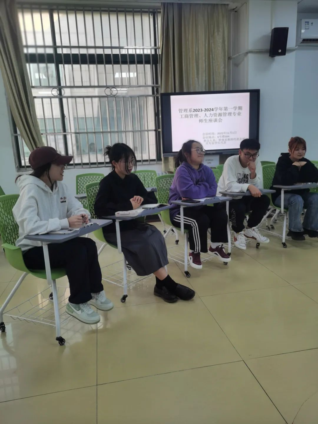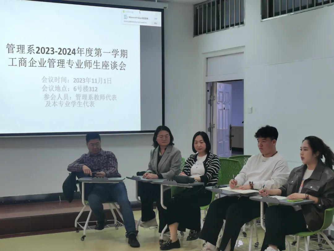 2023年11月1日下午1点50分,管理系在6号楼304、312分别召开工商管理和人力资源管理本科、工商企业管理高职师生座谈会。