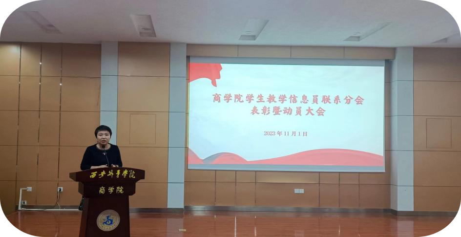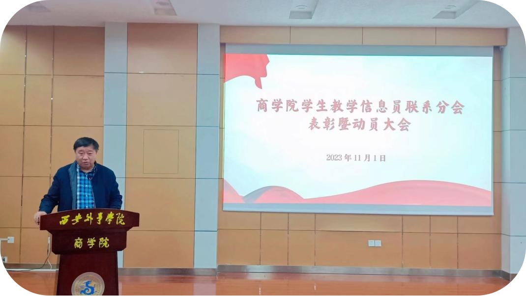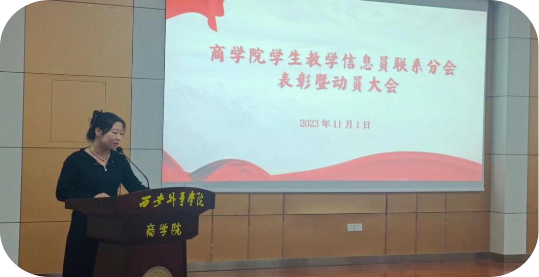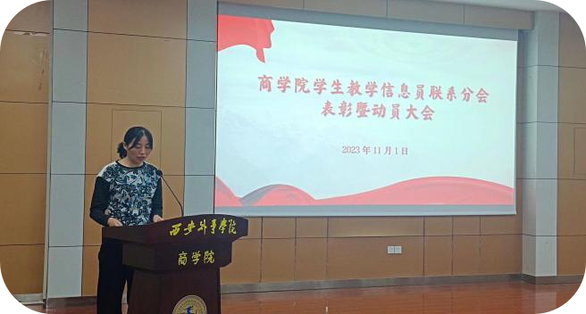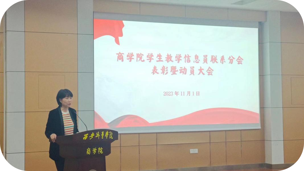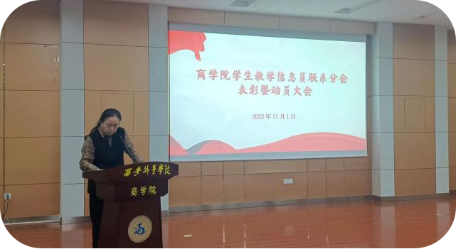 杜经理首先对受表彰的优秀教学信息员表示祝贺,并强调信息员在学院工作中的重要作用。杜经理指出,教学信息的反馈工作是连接学校与同学有效沟通的纽带,是促进教学改进、为同学们提供更好的教学保障的有效途径。