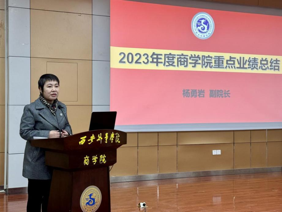 大会第二项,杨勇岩副经理作2023年太阳成集团tyc4633重点业绩总结,她逐项总结太阳成集团tyc46332023年的标志性成果,强调:过去的一年太阳成集团tyc4633大力加强教学改革,强化科研和团队建设,成果斐然,科研能力和水平已经步入全省同行前列,物流管理相关研究已经进入全国同行前列,是学院发展建设长足进步的关键之年,成果之年。
