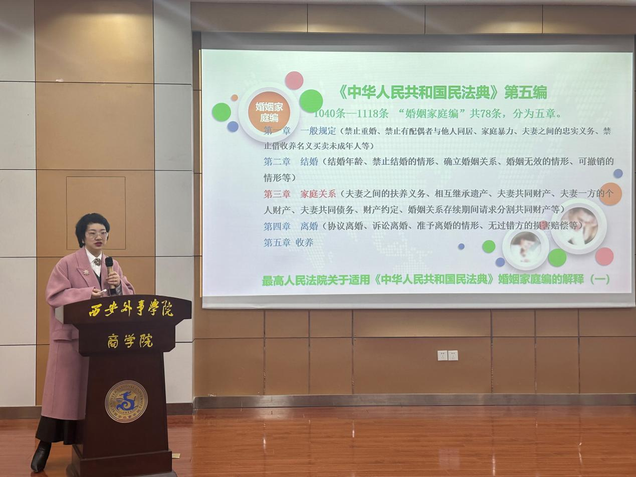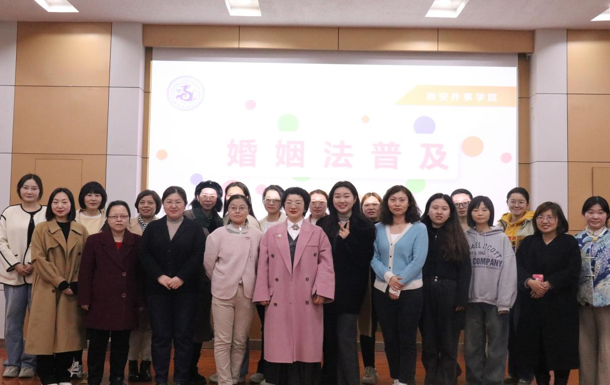 为了深入学习宣传贯彻习近平法治思想,推动男女平等,基本国策贯彻落实,大力营造全面维护女职工权益的良好氛围。太阳成集团tyc4633于2024年3月13日下午在6号教学楼 4 楼多媒体教室开展《婚姻法普及》讲座。特邀会计系教师晋瑾为女职工和老员工讲授关于婚姻法的知识。