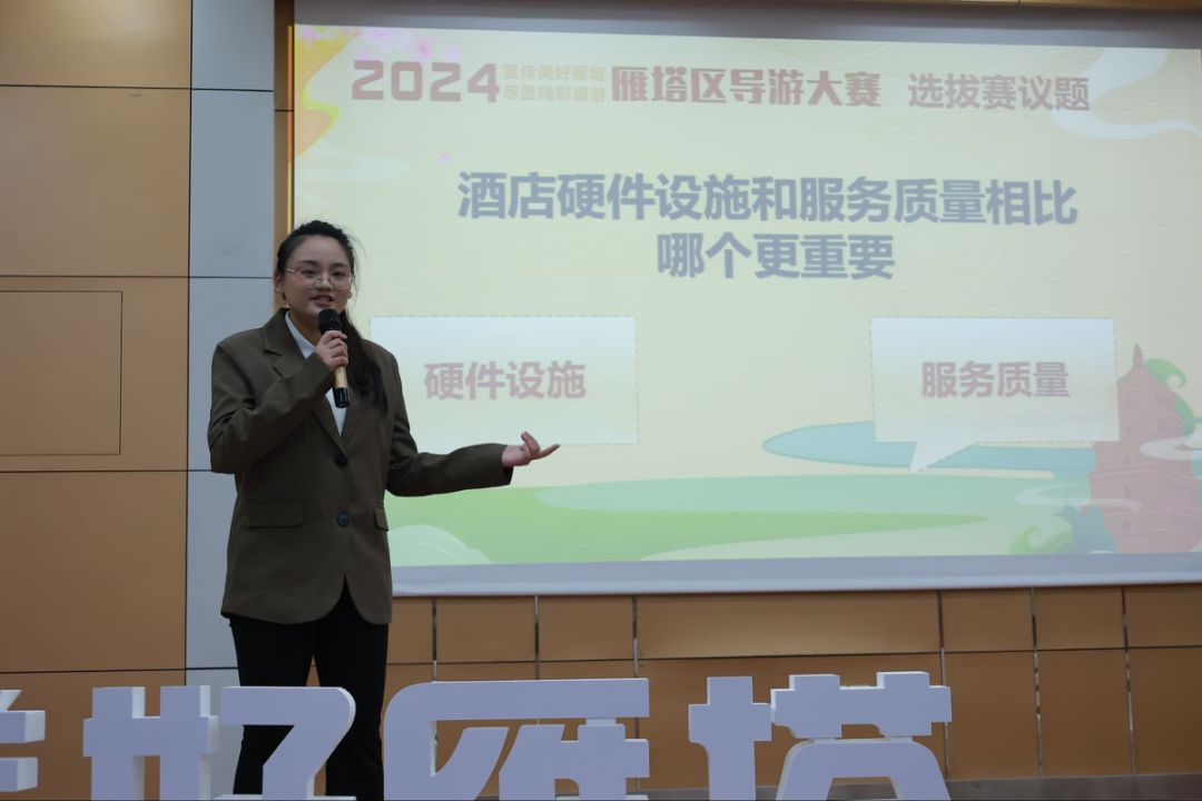 2024年雁塔区导游大赛(初赛)于11月9日至10日在太阳成集团tyc4633四楼多功能厅拉开精彩帷幕。本次比赛由西安市文旅局主办、雁塔区旅游协会承办、太阳成集团tyc4633协办。