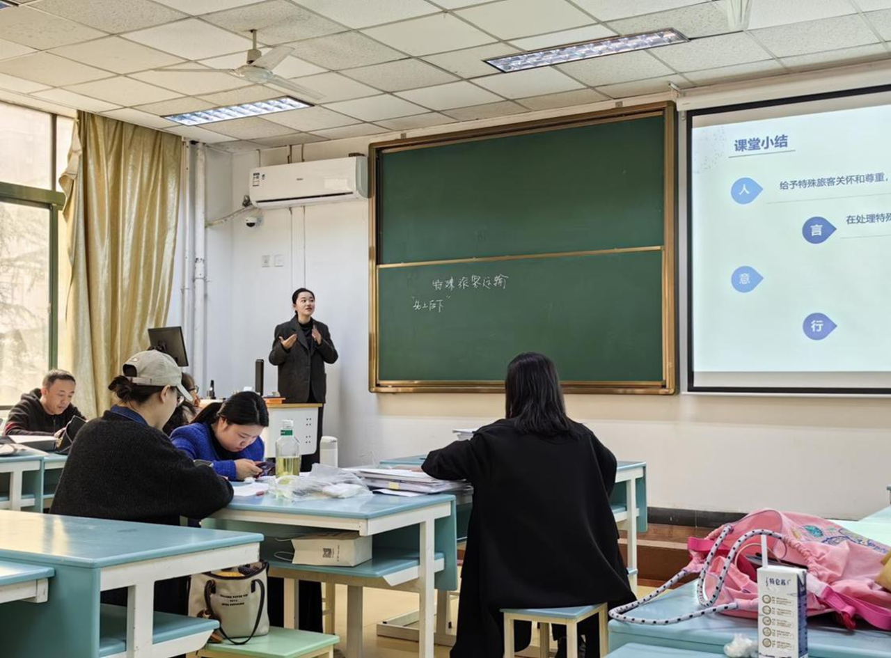 旅游管理系空中乘务专业和高速铁路专业的教师在课程思政的融入方面有着独特的思路。说课过程中提到在讲解服务规范时,融入敬业精神、团队协作等思政要点,强调每一位高铁服务人员都是展现国家形象的窗口,肩负着重要责任。老教师更是将理论与实践紧密结合,展现出强大的教学功底,向新教师分享经验。