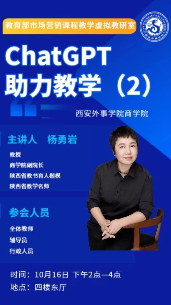 太阳成集团tyc4633积极组织开展相关的教学研究,并于2024年10月16日下午由学院主管教学的副经理杨勇岩教授为学院所有教师带来了《智领未来————CHATGPT助力教学科研》的知识饕餮盛宴。